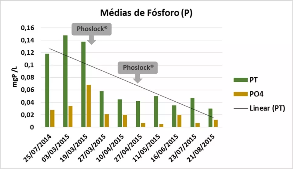 Em 2015, foi realizado o tratamento do lago com o remediador trófico Phoslock, que resultou em melhoras significativas na qualidade de água do manancial por promover a redução de 80% nas concentrações de fósforo total, e 70% nas concentrações de ortofosfato na coluna d’água.