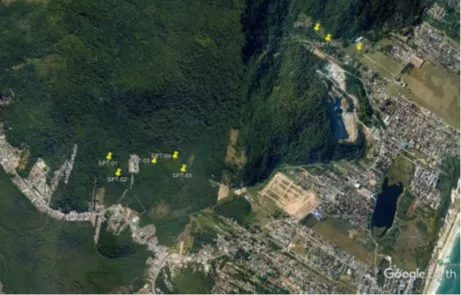 Em relação aos dados extraídos dos piezômetros, estes foram corrigidos considerando-se pressão atmosférica constante a 101,325 kPa e densidades relativas de água doce. Para conversão dos resultados em profundidade em m da água subterrânea, foram aplicadas equações constantes relativas a cada piezômetro construído que consideraram o nível de referência e profundidade escavada dos mesmos.